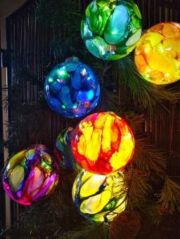 plastic ornaments. Your choice of LED light colors are warm white or multi-color. Batteries included.